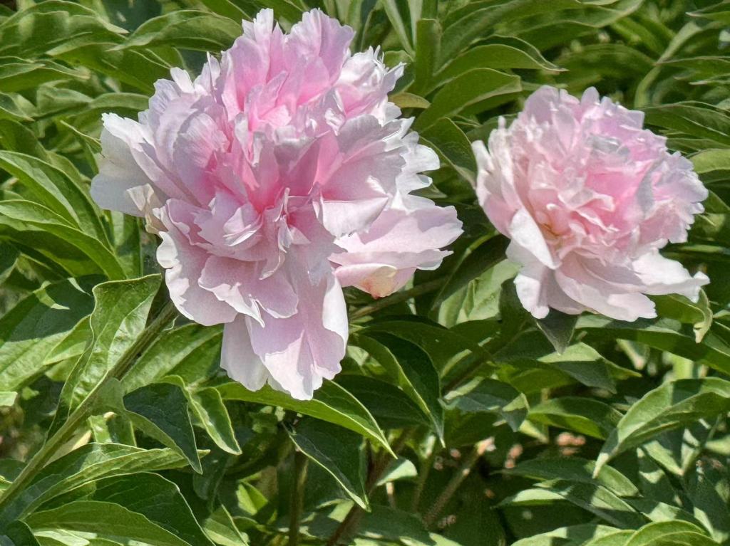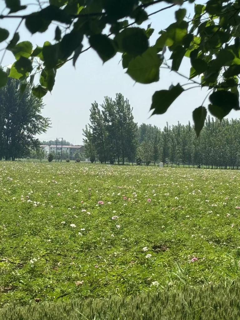 在參觀完陳慶堂的園區之後,我們來到了本地一個很巨大的芍藥種植田地。可惜也是一星期前才剛剛盛開,如今是幾乎凋零殆盡。有些失望,在感嘆自己眼福甚淺之時,只好對著這一大片綠色的芍藥田拍了照片。沒想到才開車5分鐘左右,居然看到有一大片的芍藥田還開著美麗的芍藥花,於是大家就很高興地下來拍照取景。我注意到芍藥花田的四周居然還有一個帶狀的區域種植著麥子。至於為什麼會有這樣子的農業技法,這個我就無從知道了。