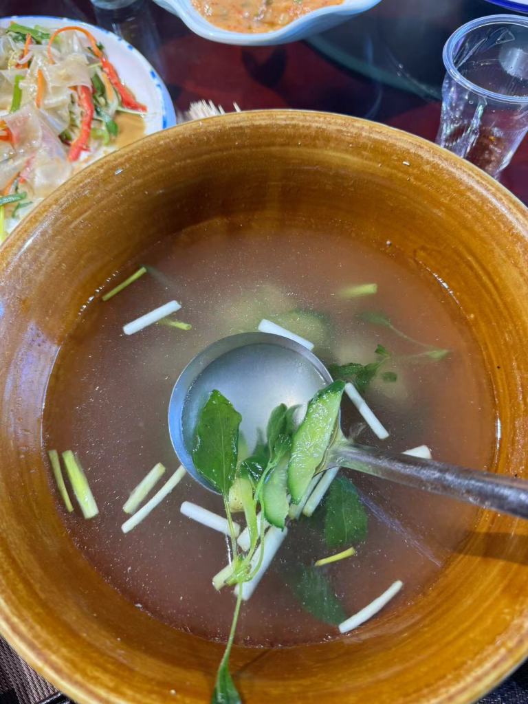中午李總請我們到中途一家亳州的農家菜吃飯,這家餐廳的位置雖然是在鄉下,但是進去之後見其陳設可說是一點都不簡單,甚至可說是蠻豪華的。只是在菜色上還真的是有皖北農家菜的特色。李總特別幫我們點了一整桌的素菜,其使用的材料都是來自附近的鄉村,非常新鮮可口,散發著鄉野的氣息和魅力。其中居然有一道是炒荊芥。想不到在亳州,荊芥可以直接作為一道菜直接吃!吃起來覺得像芥末和薄荷的結合,會有一種清涼發散的力量。果然是辛涼解表藥!在最後又上了一道荊芥湯,也是相當好喝。亳州真的是一個藥膳之都,無誤!