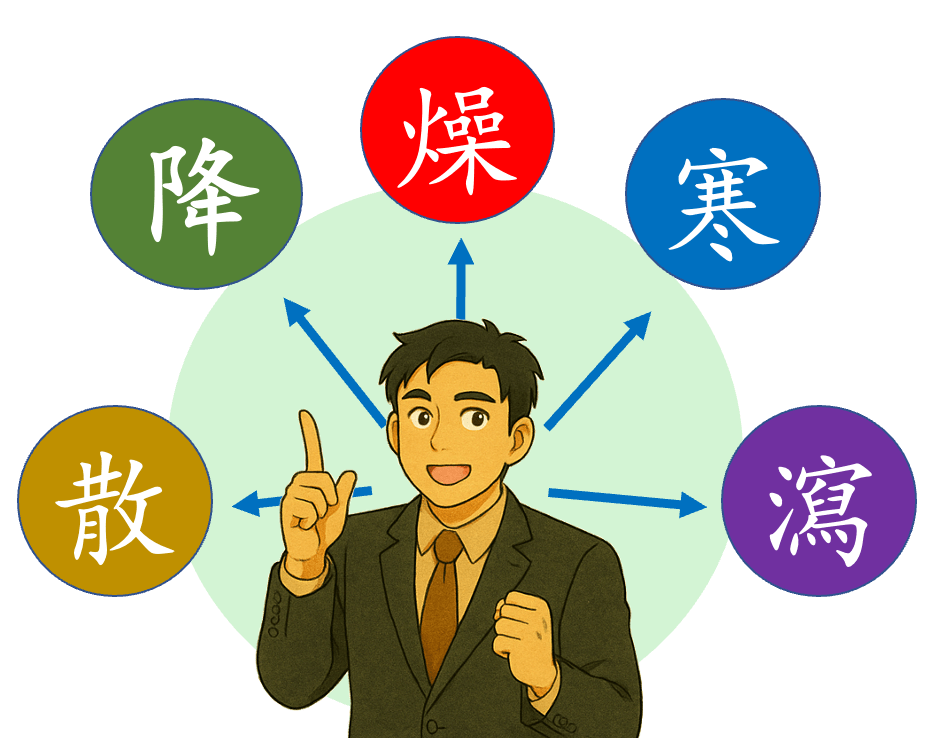 附::中醫學習大腦的單味藥整理也列之如下,可以看出藥性非常偏於寒性、瀉性、降性、散性、燥性