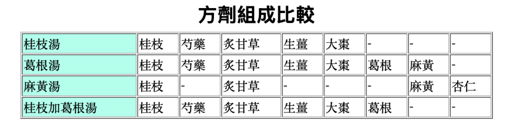 ■ 桂枝湯 vs. 葛根湯 vs. 麻黃湯 vs. 桂枝加葛根湯