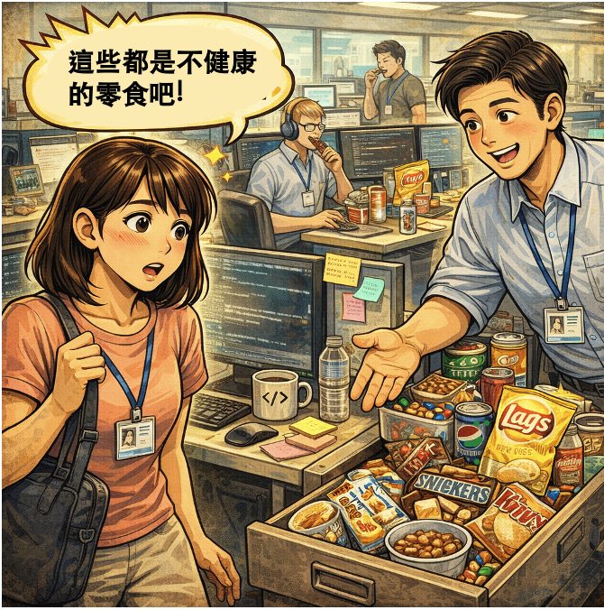 還記得在剛開始進入科技公司工作的時候,我很驚訝的發現每個同事的辦公室裡都有很多的零食,雖然大部分的工程師都是男生,但是居然愛吃一些小零食這件事令剛進入職場的我有點驚訝。後來資深的老前輩告訴我,我才知道工作壓力巨大每天爭分奪秒的晶片邏輯設計工程師生活中,吃一點小零食緩解壓力是一個不可或缺的重要緩解。