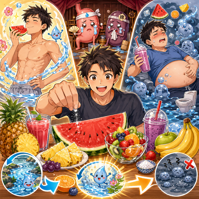 當然,這不是叫你把水果醃成鹹菜,而是一點點就好。水果補水,鹽讓水動起來;沒有鹽,水可能只是在身體裡「躺平」。水果補水,但也可能讓脾胃「淹水」! 水果加一點鹽,不是奇怪,是智慧。